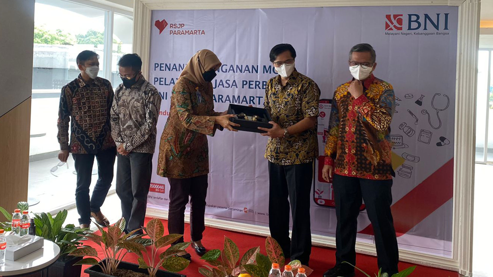 Pada hari Jum’at 2 Desember 2022, RSJP Paramarta bersama dengan BNI menandatangani MOU Pelayanan Jasa Perbankan. Penandatangan MOU tersebut dilakukan oleh Pimpinan BNI Wilayah 04 Bandung, Maya Agustina dan Direktur RSJP Paramarta, dr.Jimmy Agung Pambudi, MARS bertempat di RSJP Paramarta, Bandung. Pada kesempatan ini hadir pula Pimpinan BNI JPK Bandung, Riva Rifwanakara dan Direktur utama PT. Global Sekawan Kreasi, Peni Pahlawanda. Selain penandatanganan, tim RSJP Paramarta mengadakan simulasi Sistem Informasi Manajemen Rumah Sakit (SIMRS) dan aplikasi MyParamarta serta memperkenalkan fasilitas-fasilitas yang ada di RSJP Paramarta.